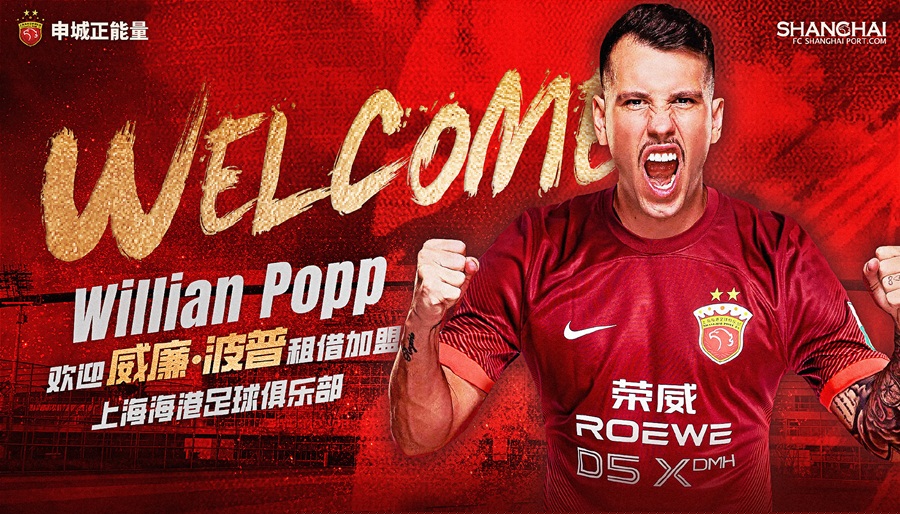 经友好协商,上海海港足球俱乐部与泰超蒙通联足球俱乐部达成一致,巴西球员威廉·波普(Willian Popp)以租借形式加盟上海海港足球俱乐部。
