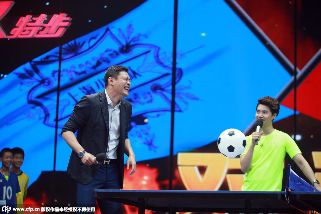 范志毅黄博文录制天天向上 现场PK乒乓足球(组图)