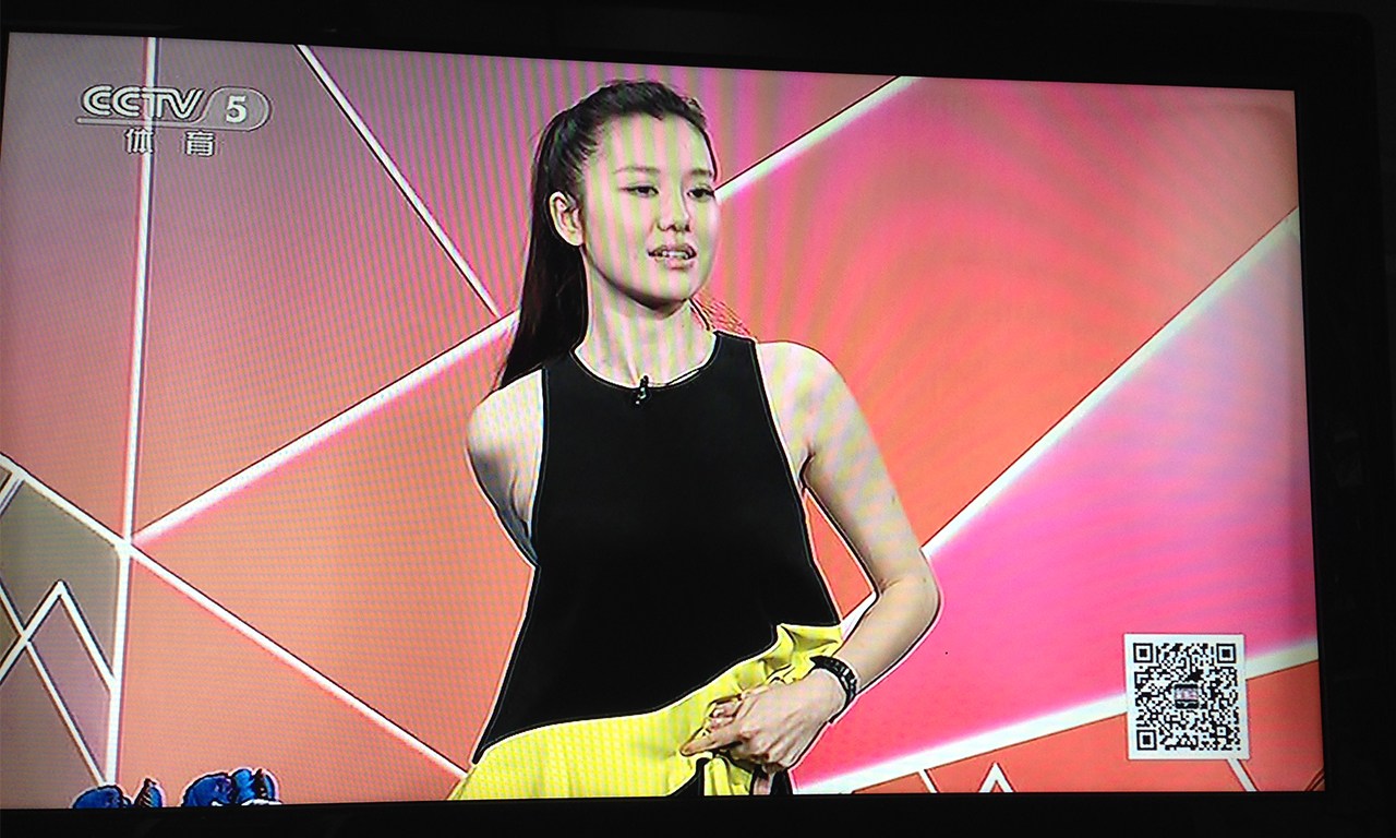 央视篮球主播刘语熙准备在节目中完成反手摸肚脐