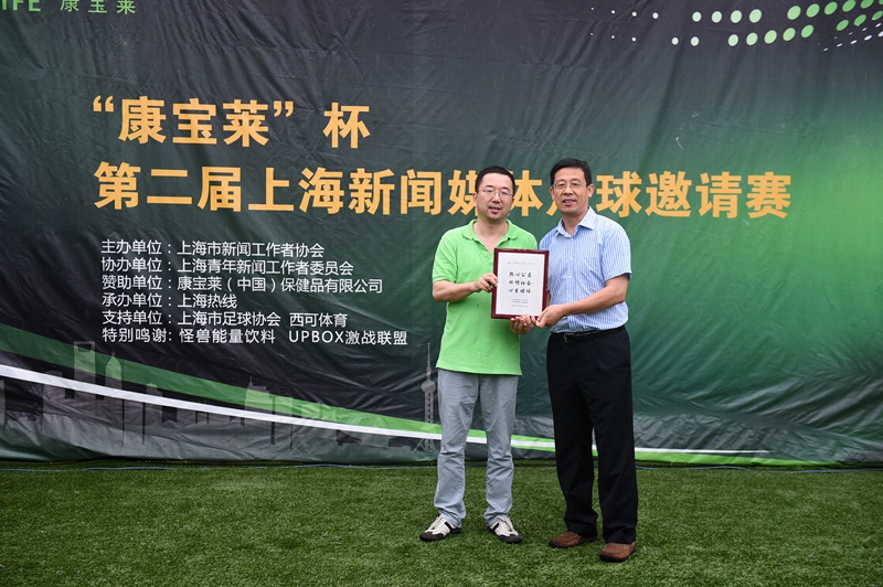 于殿武副秘书长代表上海市新闻工作者协会向赞助商康宝莱(中国)保健品有限公司颁发了最佳支持奖。