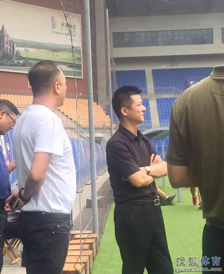 权健董事长亲自观战松江 神情专注不时交谈(组图)