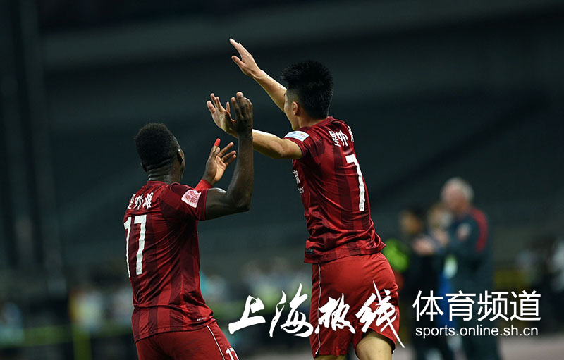 孔卡精准长传武磊单刀破门 与蔡惠康撞胸庆祝(图)