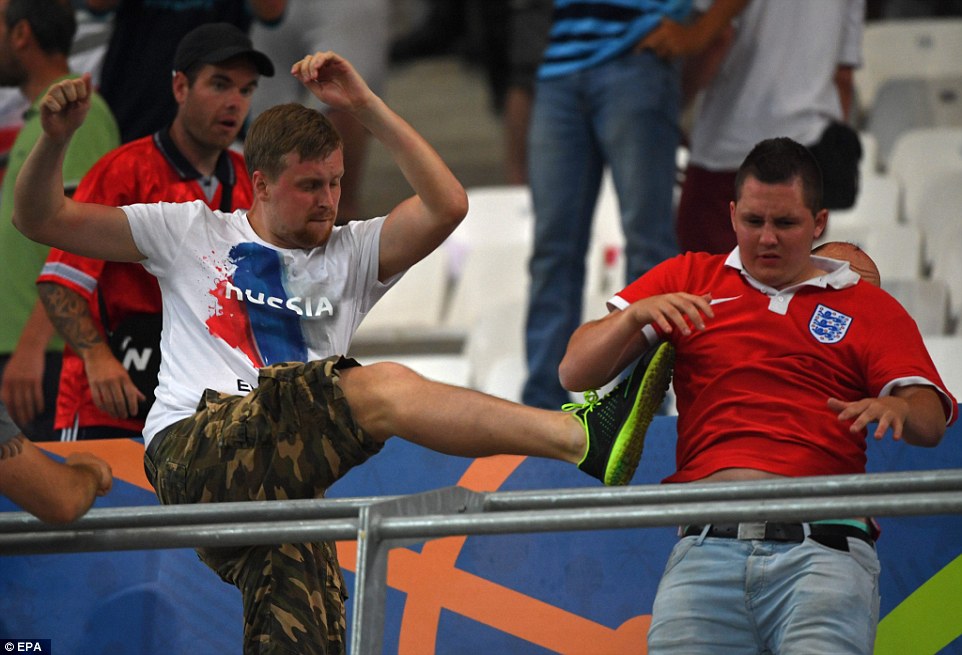 战斗民族太彪悍!俄球迷满场暴打英格兰球迷(组图)