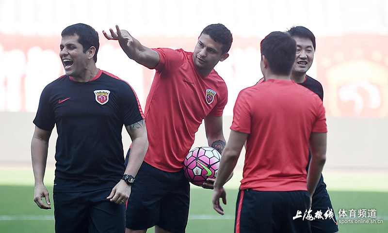 上港备战亚泰欢乐多 埃神"惨遭"助教弹耳朵(组图)